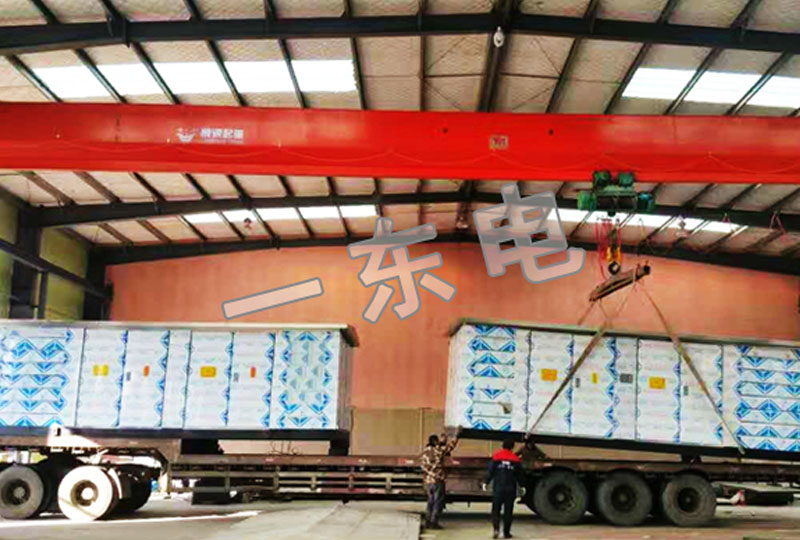 制作好的箱變通過吊繩正在裝載箱變運(yùn)往客戶途中